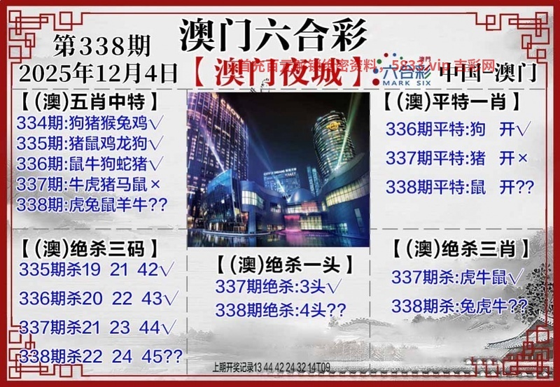 | 338期 | 3-4-5-9尾 | 开:狗08 |